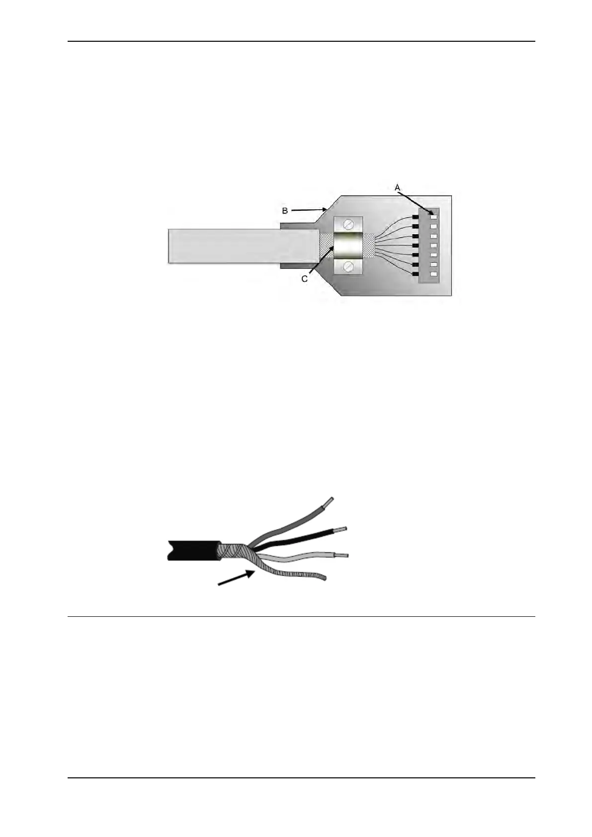 C The cable shield is exposed and 360° clamped to the back shell. A tight fit