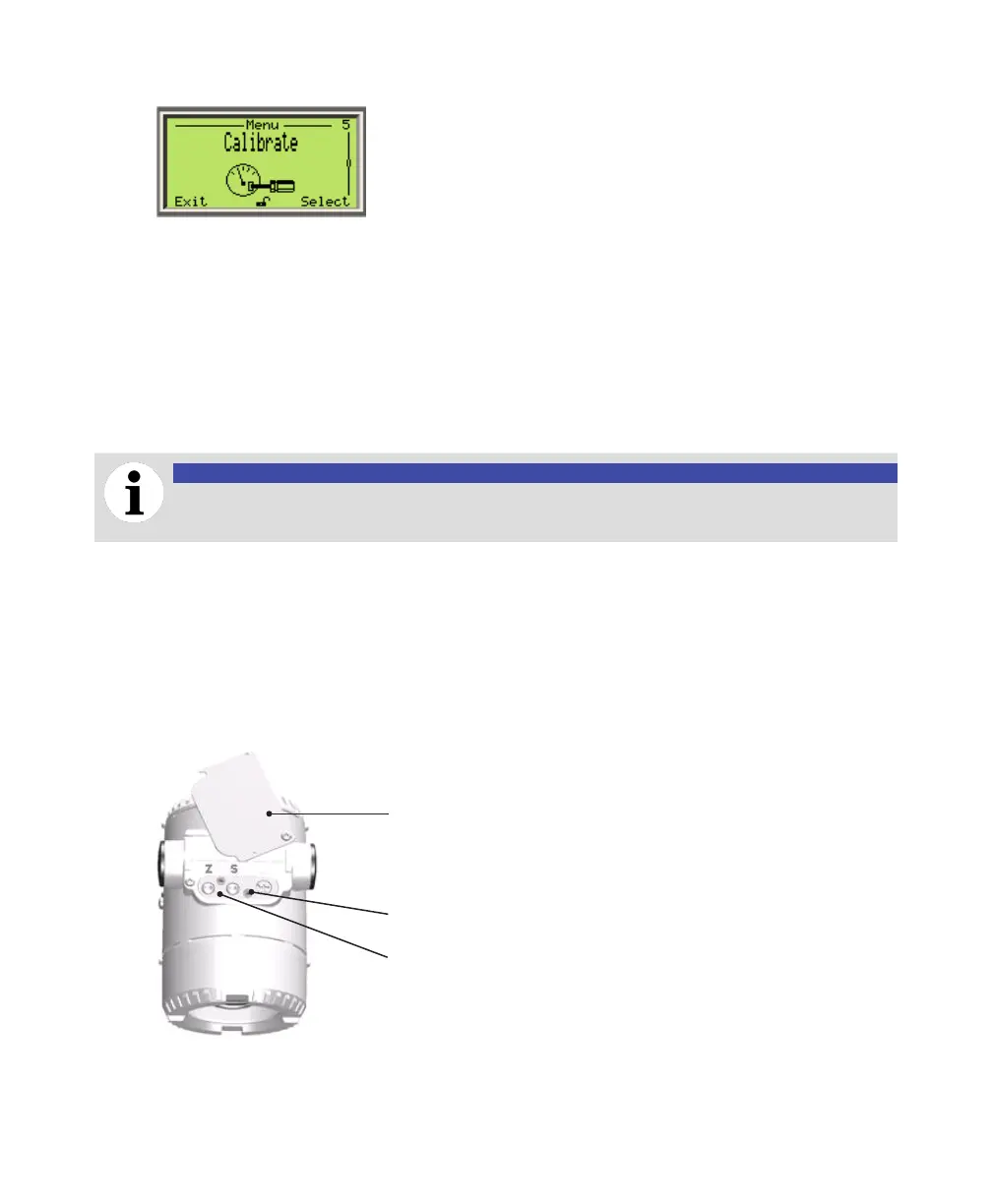 1 On the instrument head, unscrew and remove the nameplate. This exposes two buttons (identified Z