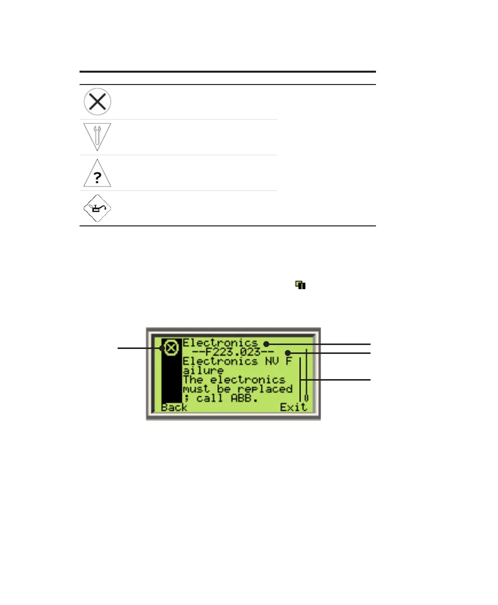 In the error description, the error code number is displayed on the second line (e.g., – – F223.023 – –).
