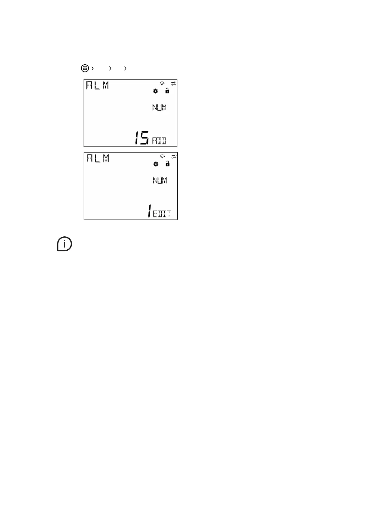 • “ADD” indicates that the alarm is not yet present. If it