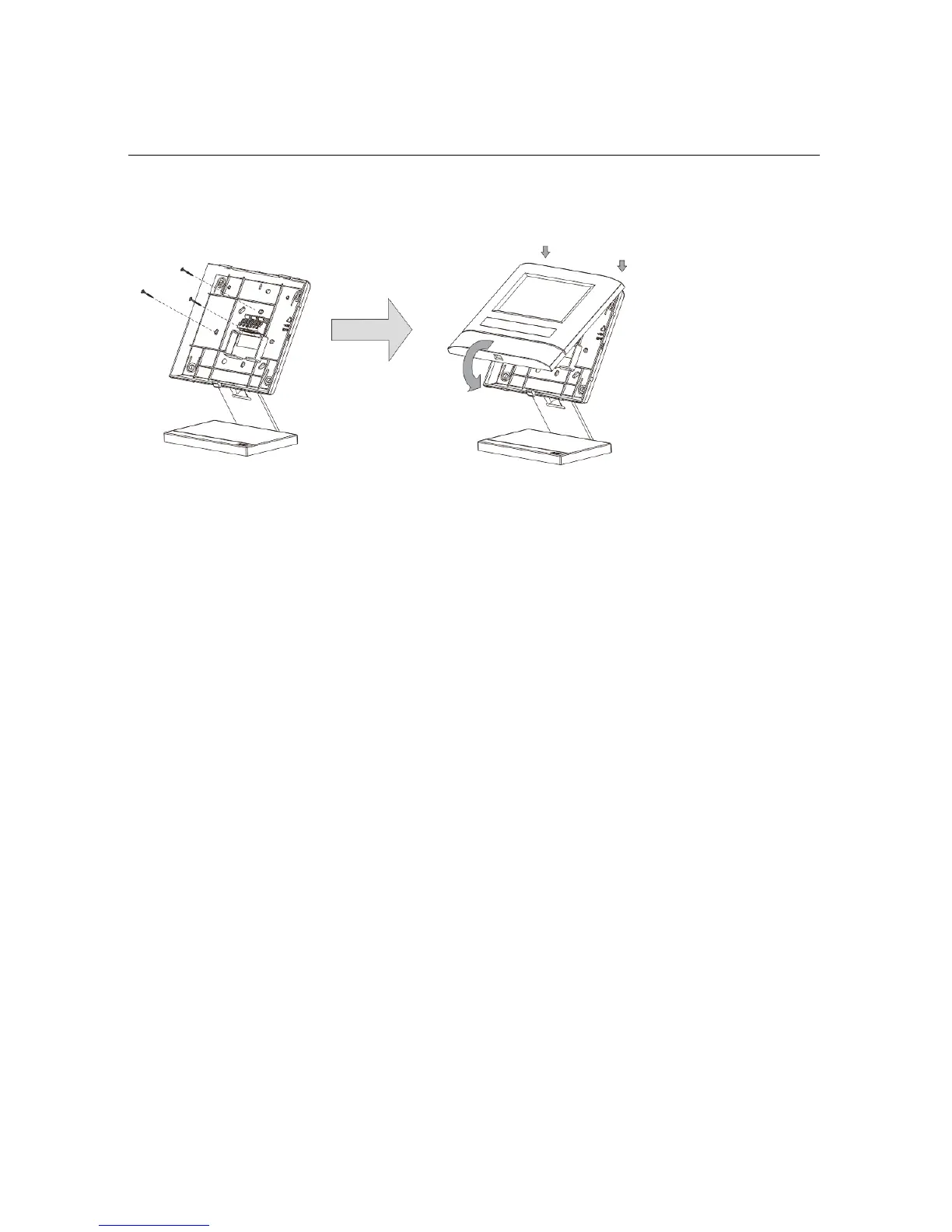 2. Latch the upper part of the device onto its bottom part: place the upper side of the
