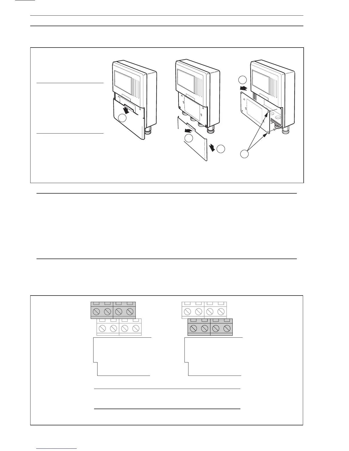 Each terminal block has two parallel rows of connectors. The corresponding label for each connector is