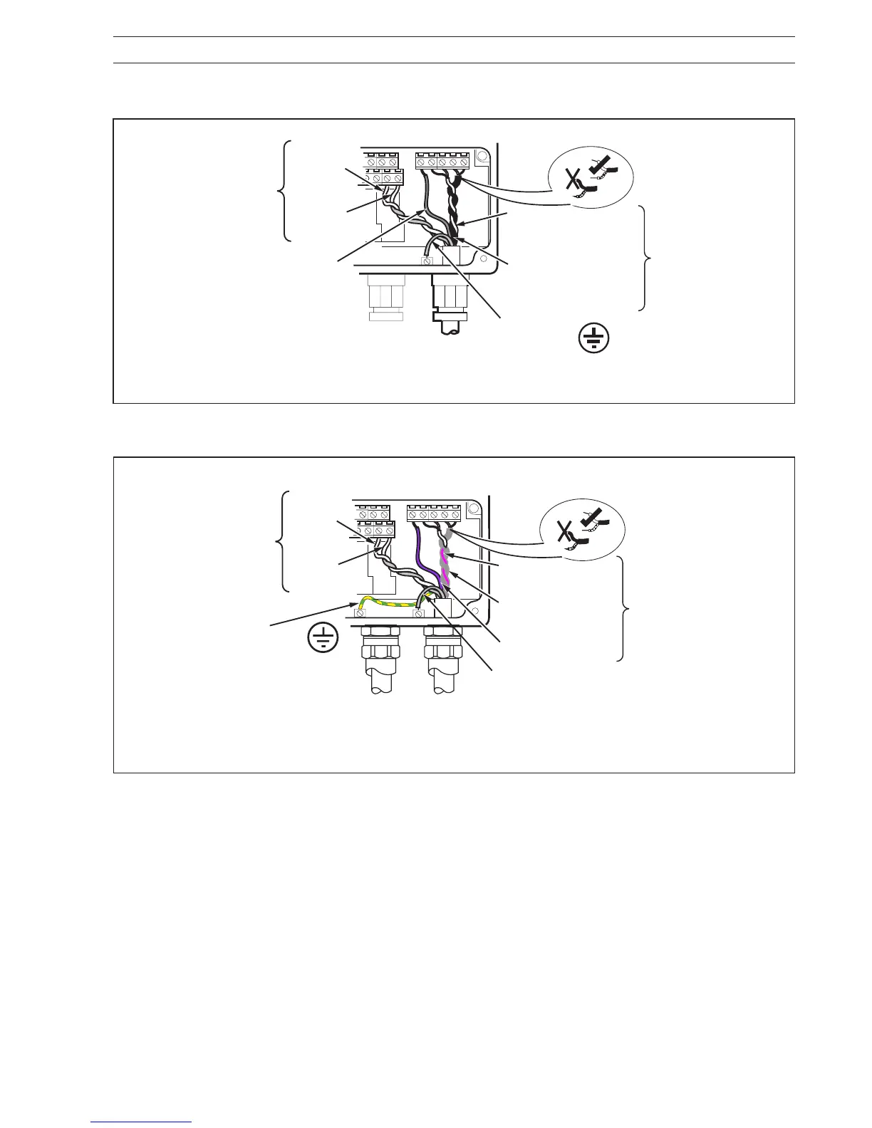 Fig. 3.14 Sensor Cable Connections at the Transmitter (North American Wiring Practice)