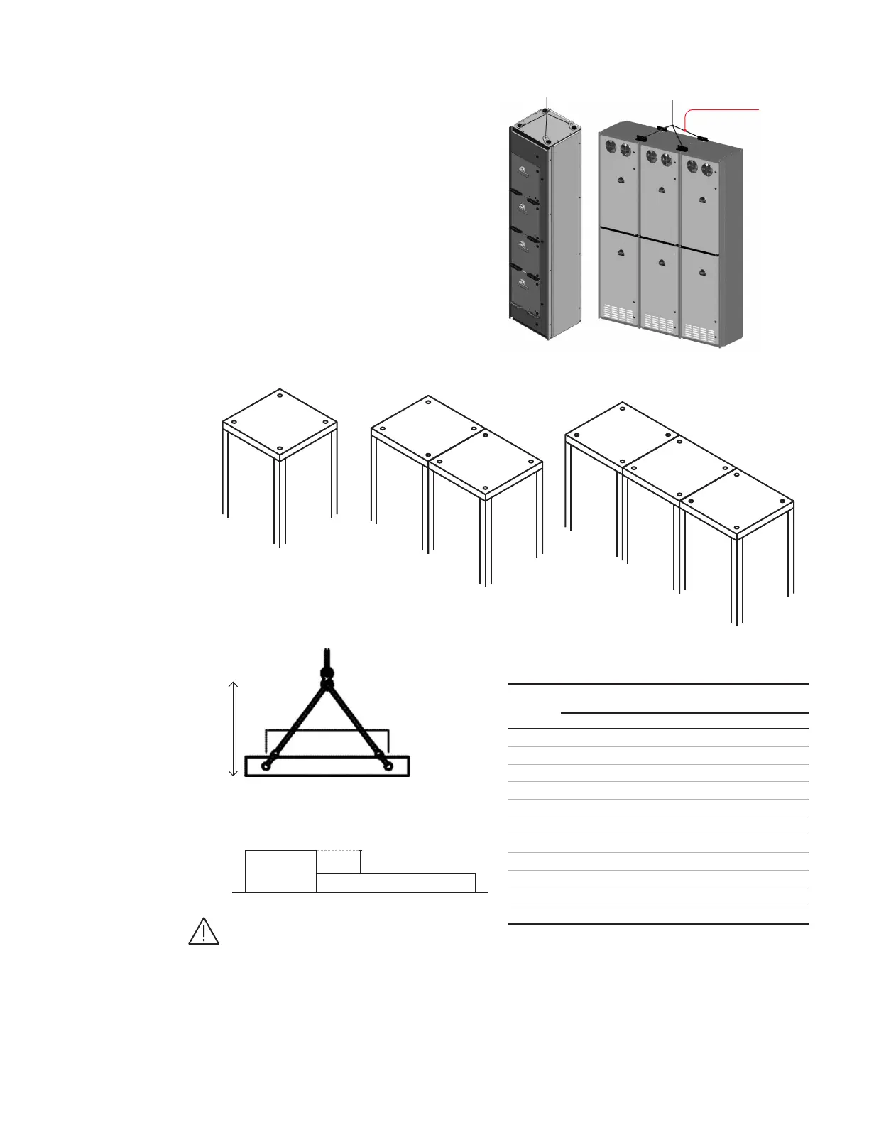 Lifting eyes for 1 section Lifting eyes for 2 sections Lifting eyes for 3 sections