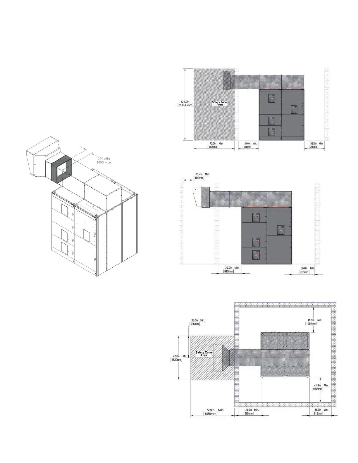 in (1000 mm) from the side/back of the switchgear (see