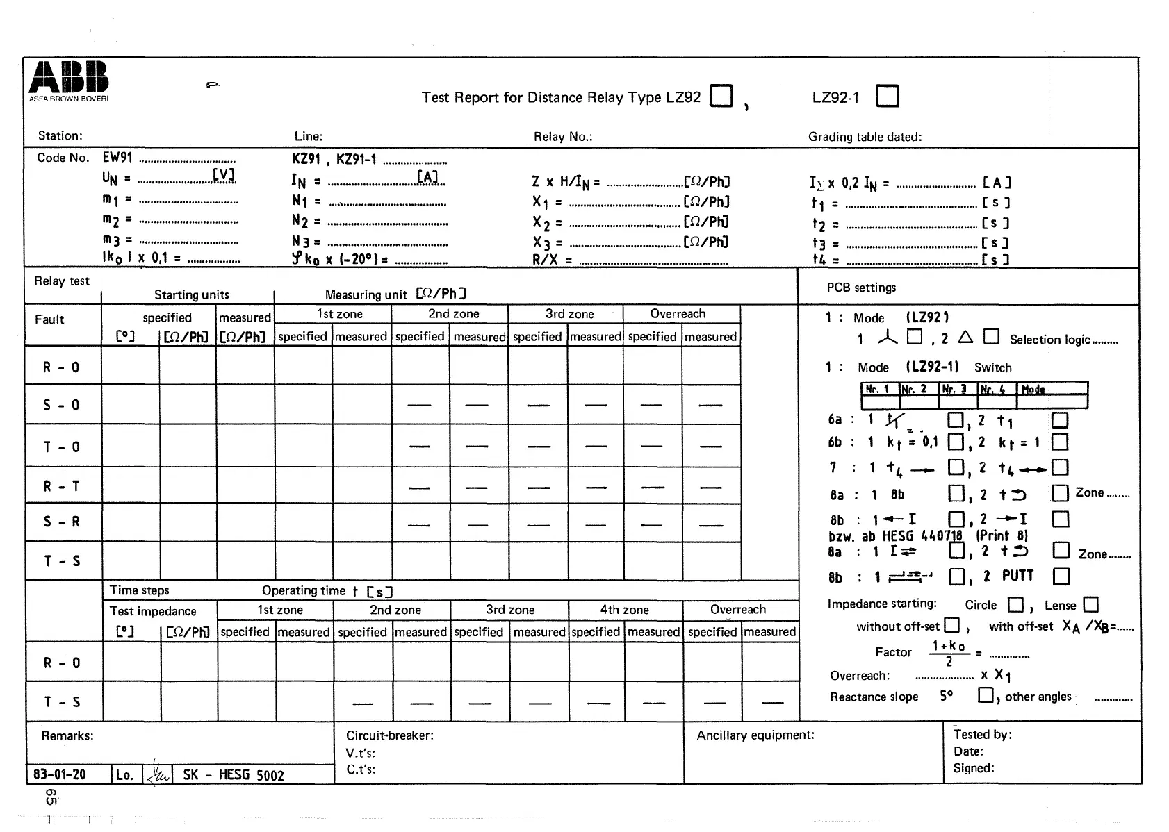 Distance Relay Type LZ92 0