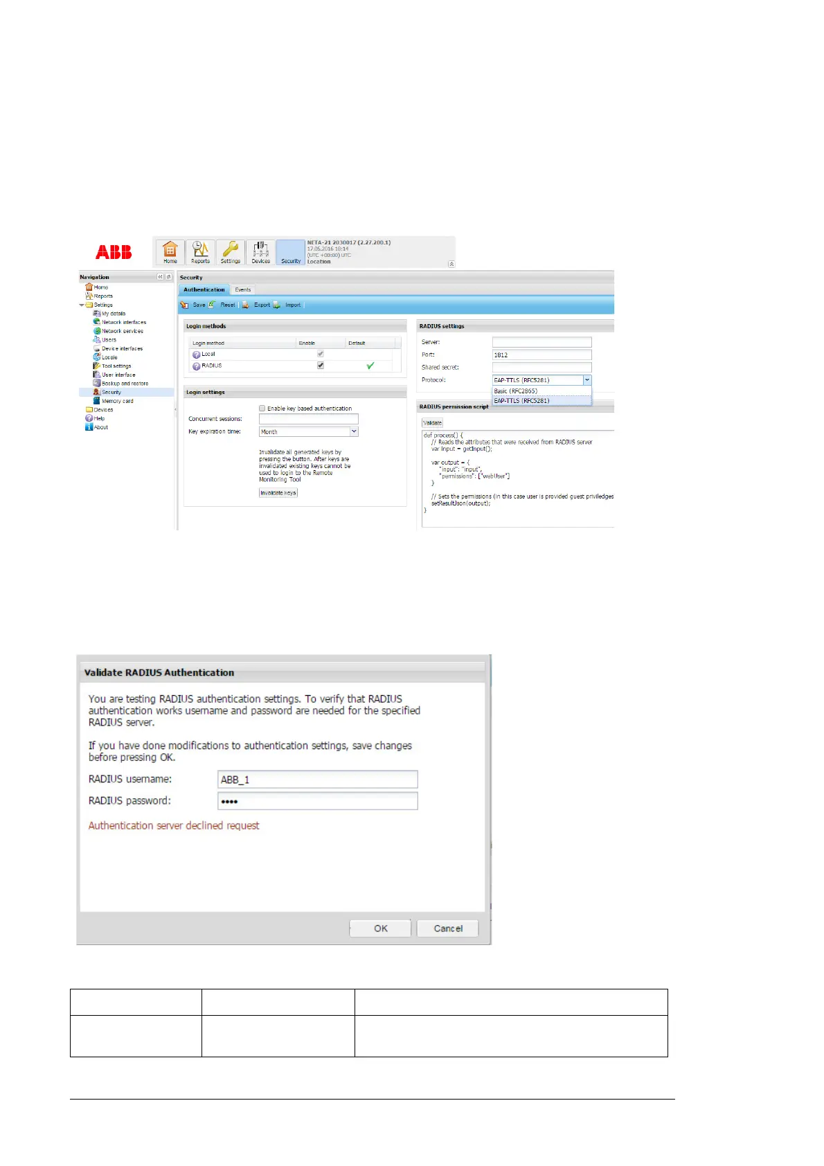 3. If required, click Validate to validate the script and test the RADIUS login. On