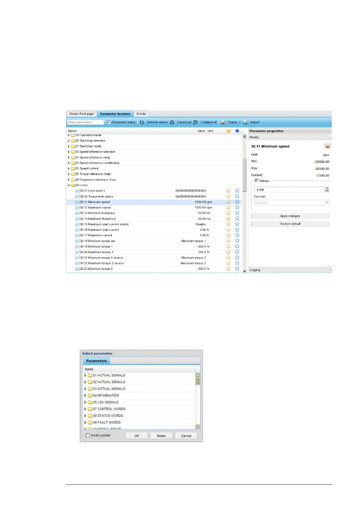 selection control (parameter pointer or bit pointer). If there is the Parameter check