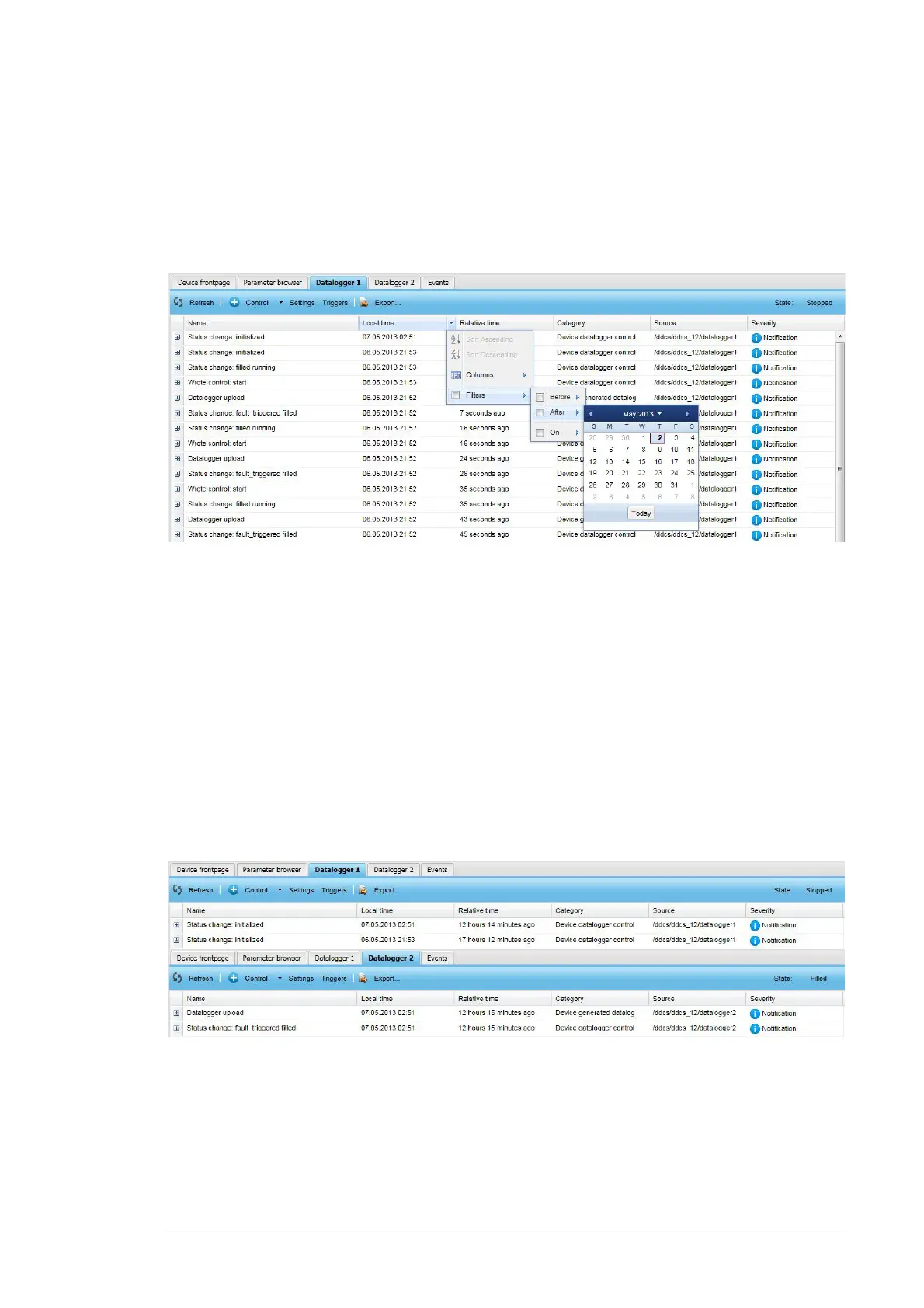 4. Click the Datalogger 1 or Datalogger 2 tab to view the system data logs.
