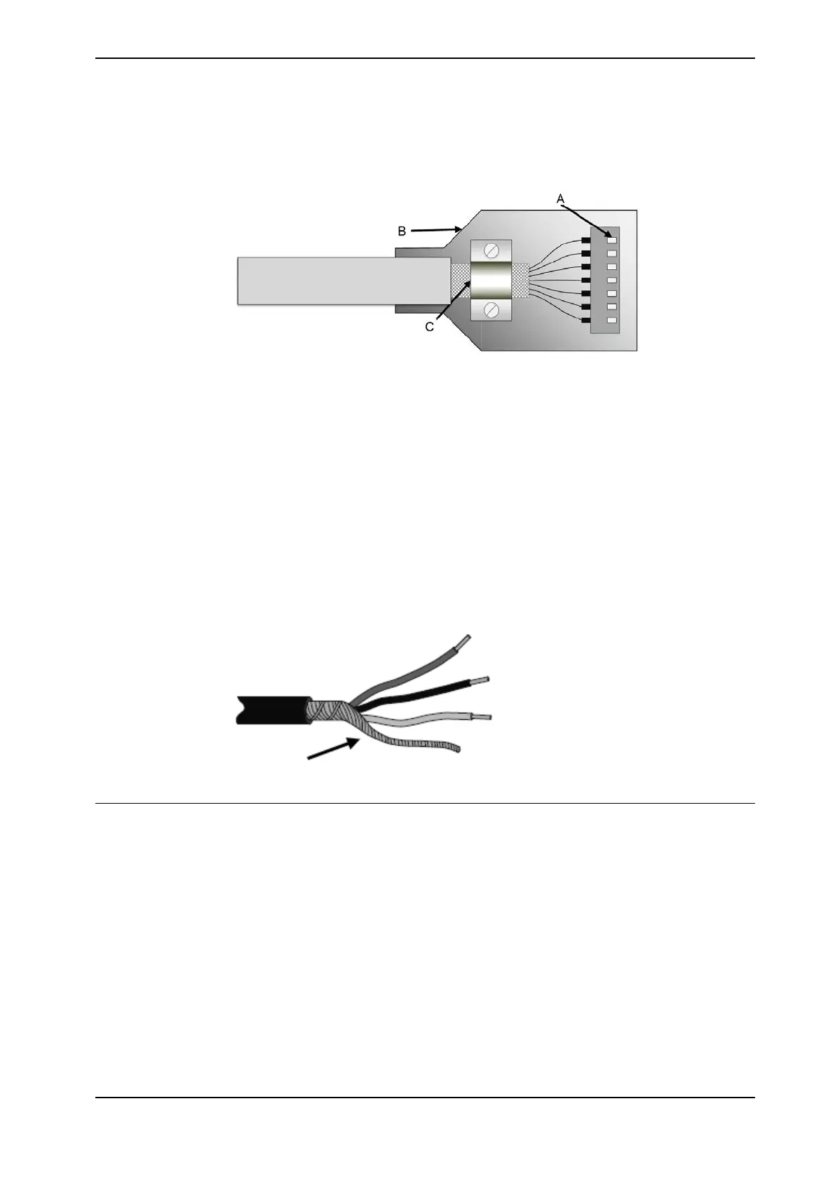 C The cable shield is exposed and 360° clamped to the back shell. A tight fit