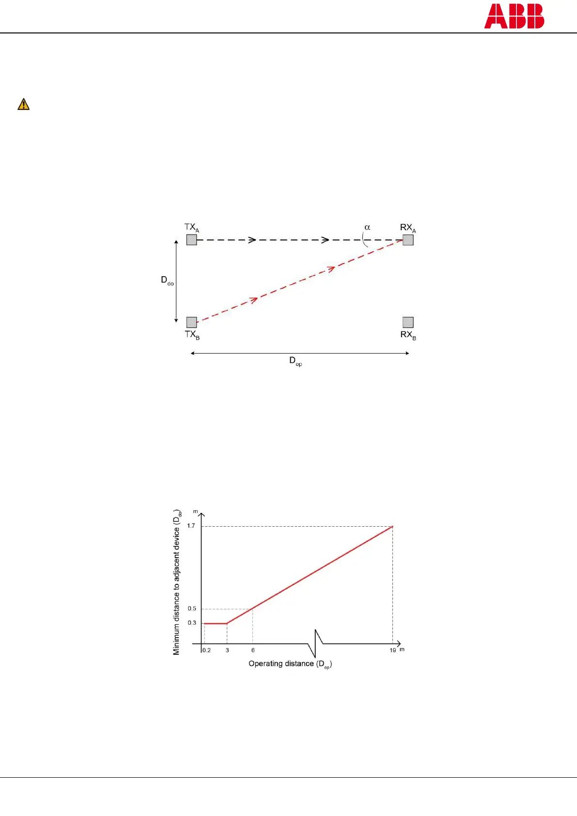 Figure 12 – Minimum distance to an adjacent device as a function of the operating distance