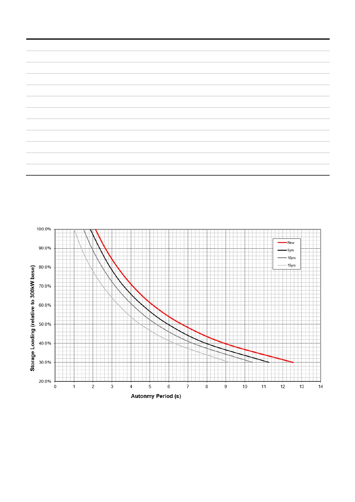 The Storage Load vs. Autonomy Period graph below shows dependency of autonomy period versus loading of