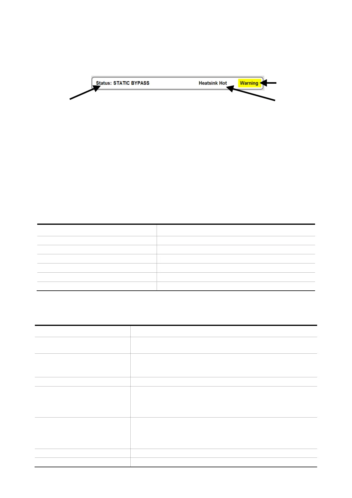 Status Bar and a list of all faults and warnings presently active will be displayed.