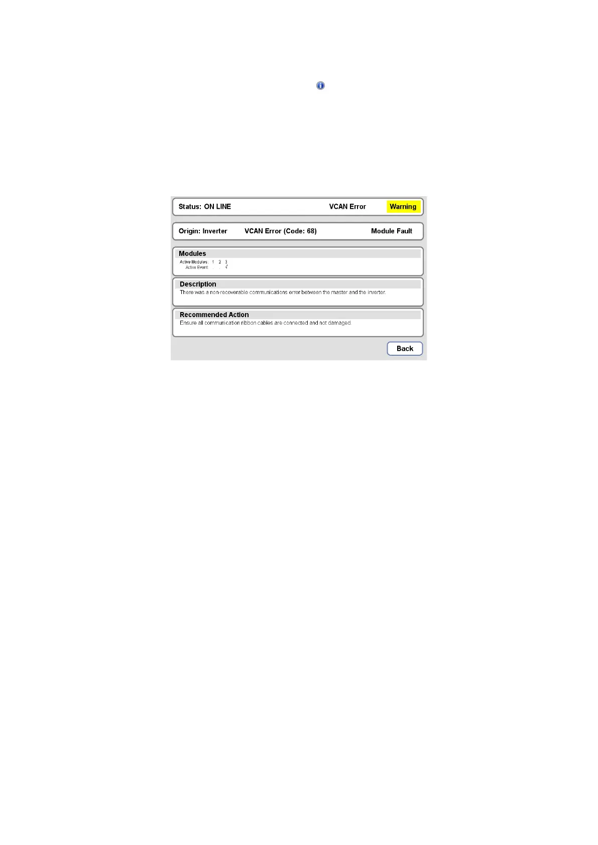 The Modules section displays which of the PCS100 modules in the PCS100 UPS-I are reporting the event.