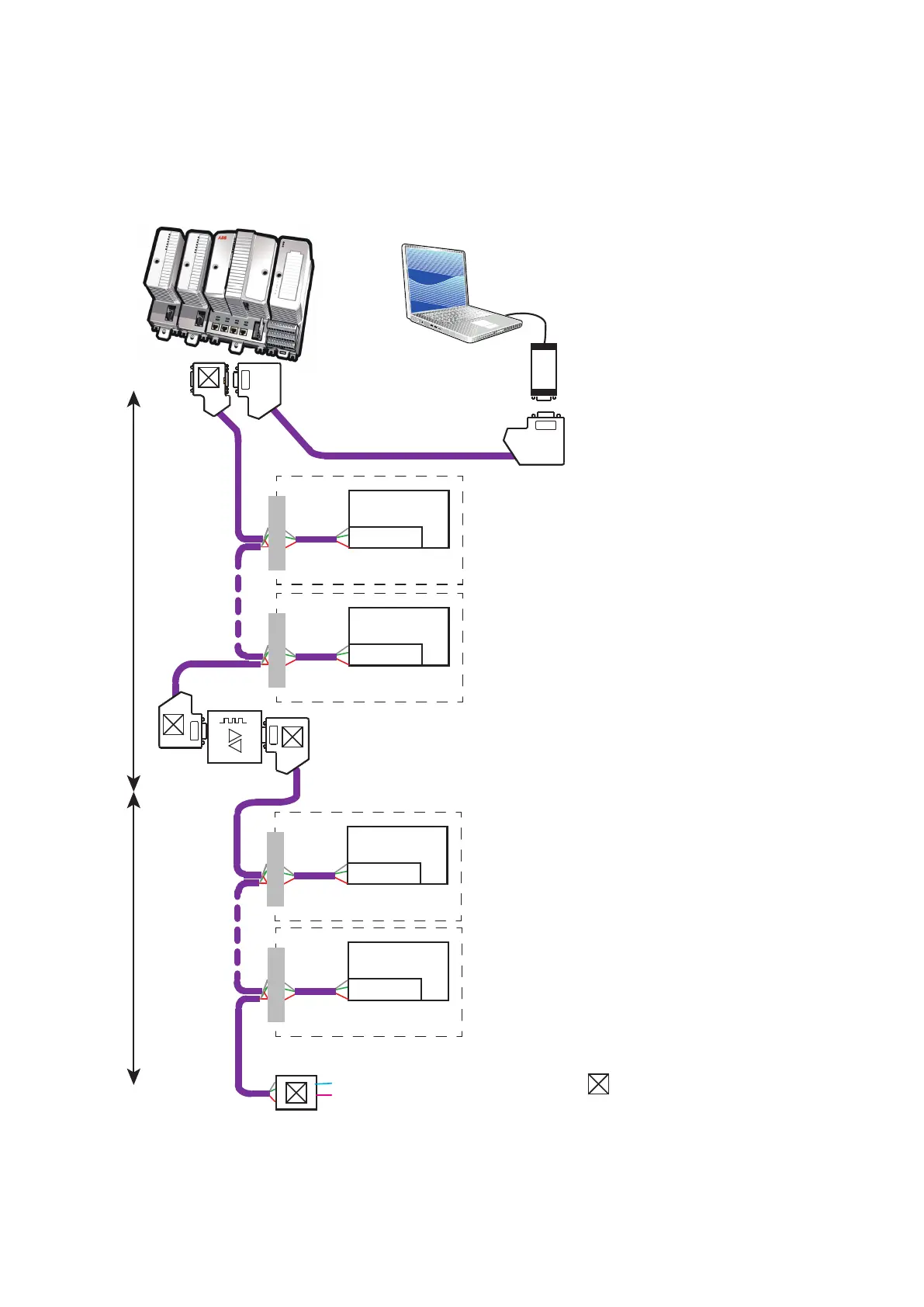 PROFIBUS Line in Drawout Systems where PDP32.0 is installed on UMC100.3