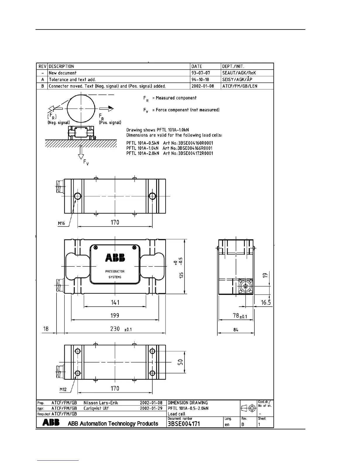 ABB PFTL 101 - Load Cell PFTL 101 A (0,5-2,0 kN), Dimension Drawing