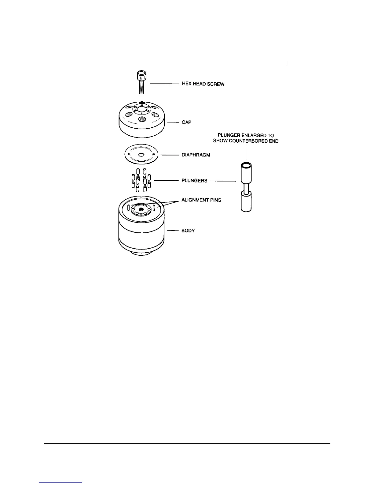 8. Install new plungers, ensuring that the counterbored end is up toward the valve cap (see Figure