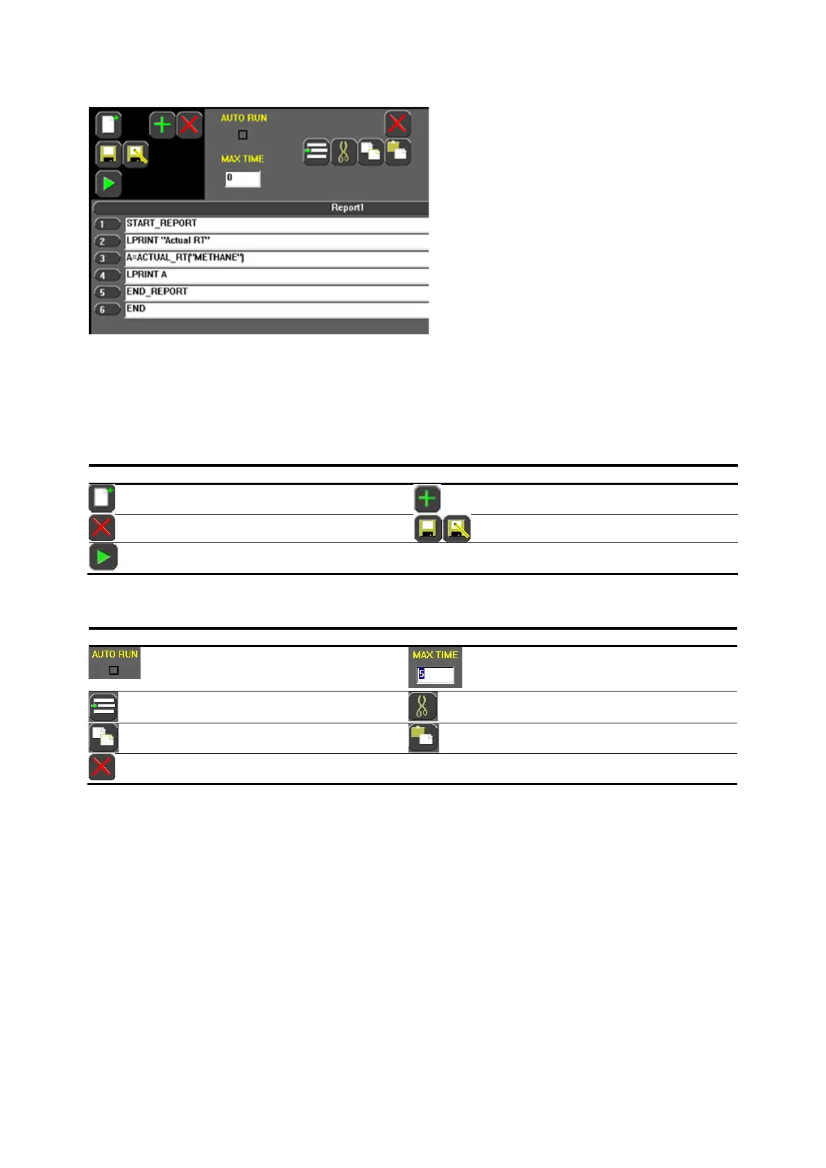 The script editing icons, on the right, are used to create and change script functions.
