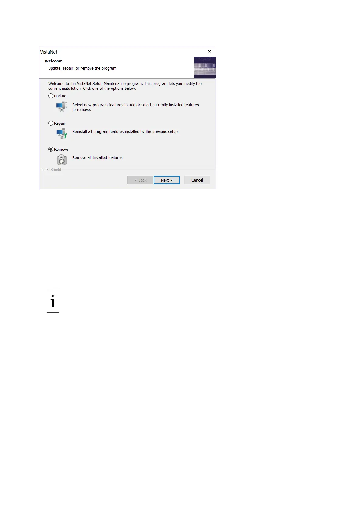 After the old version of the VistaNET software has been uninstalled, if you plan to use an older version