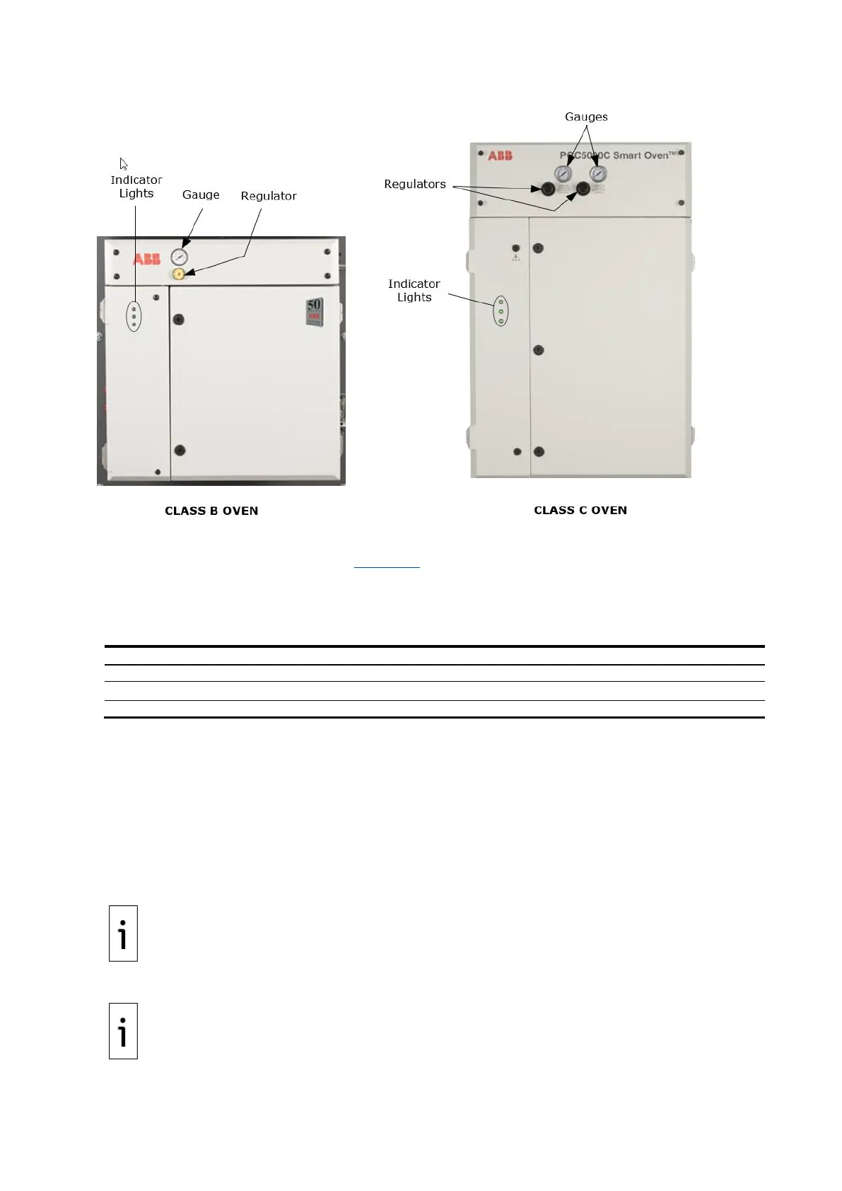 Each oven has three LED indicators (see Figure 3-6) which show the current status of the oven.