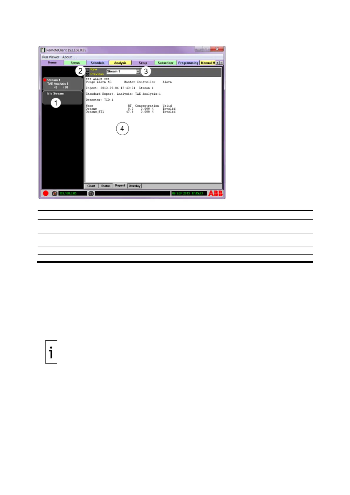 ⎯ Alarm reports and chromatograms for each stream