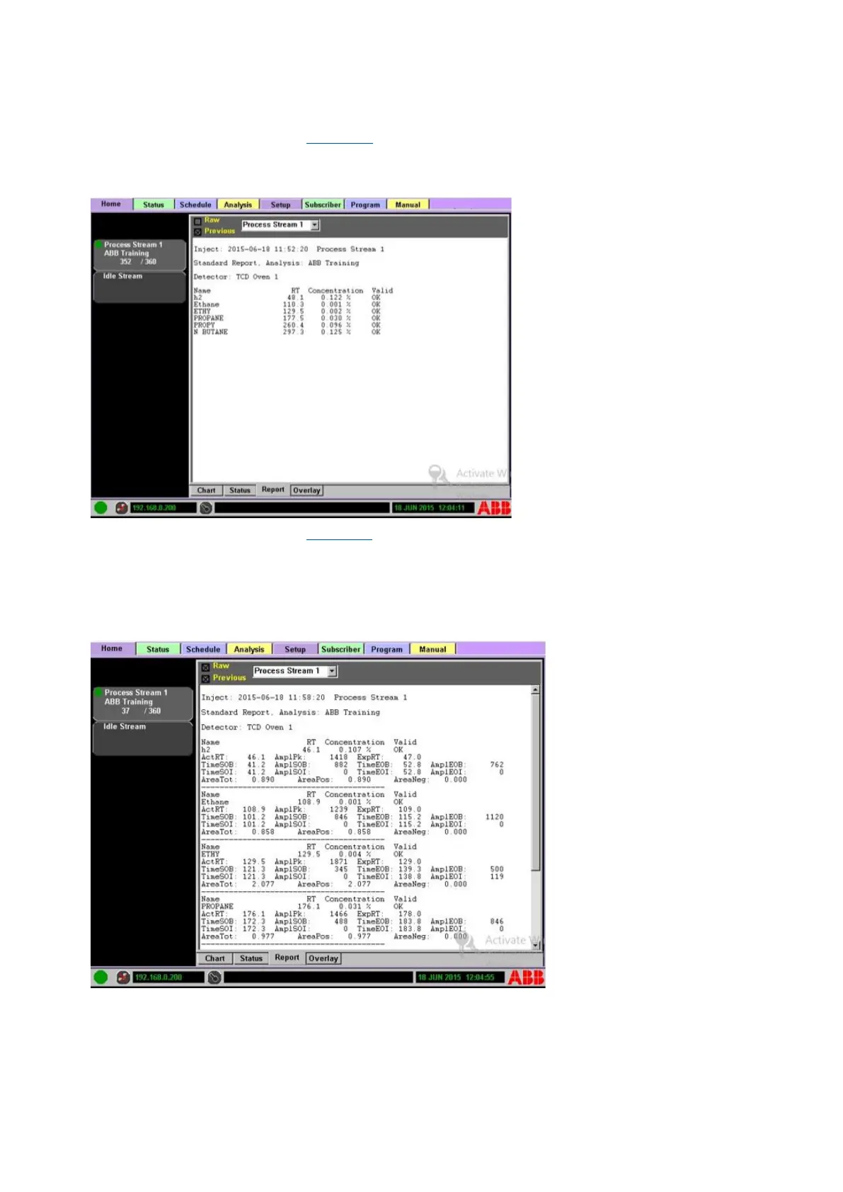 ⎯ The standard report (see Figure 4-5) displays inject time, sample stream, analysis name,