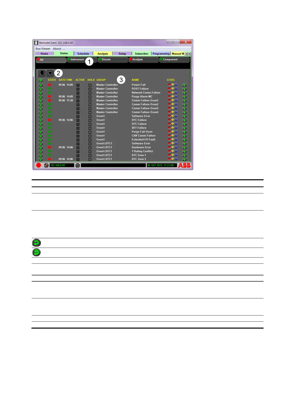 Monitoring System. The Status Tab is used to collect additional information of the analyzer system’s