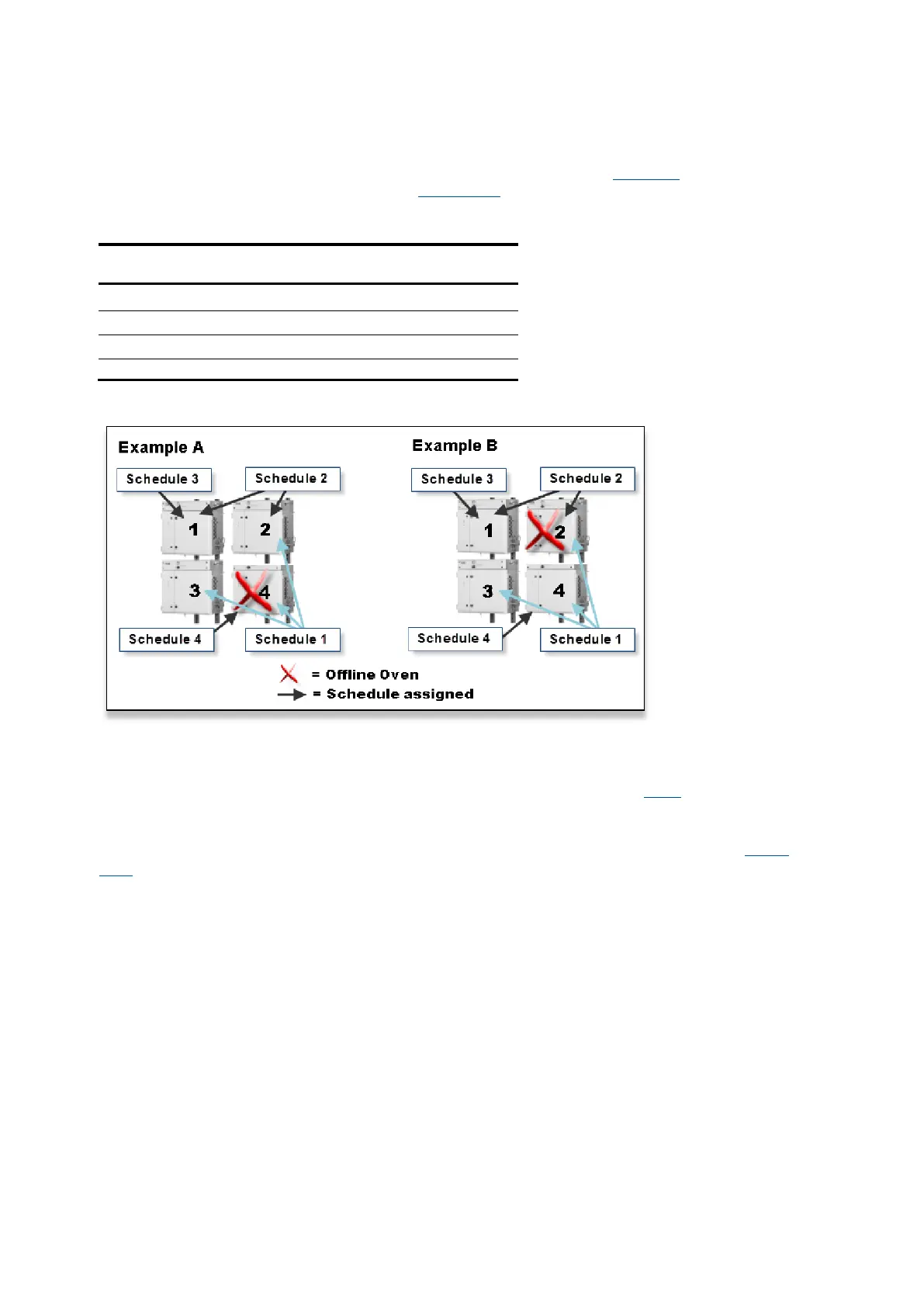 offline, it impacts only the schedules associated with the assigned oven. Table 4-1 provides an