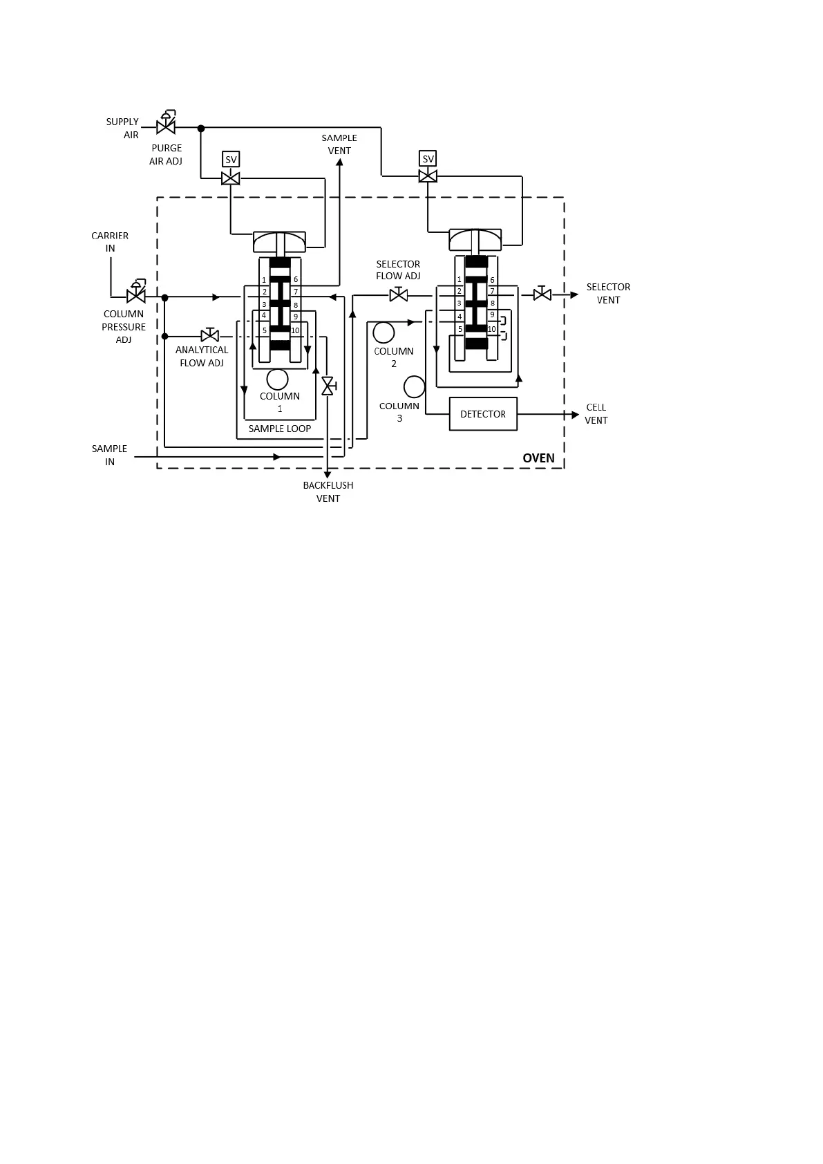 are then backflushed to vent. Column 2 separates the components to be measured, which elute