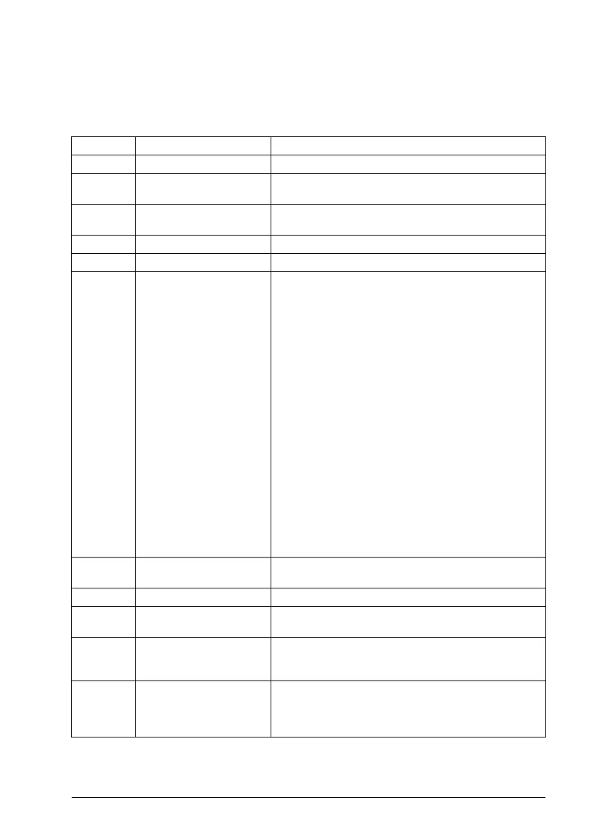 Code Function name Description