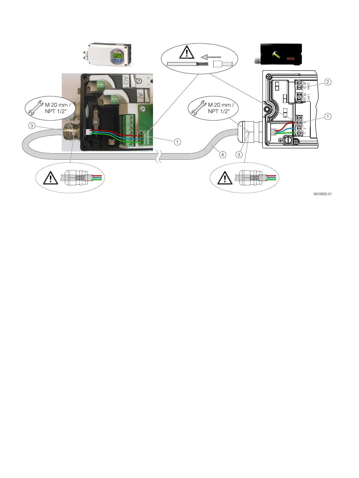 1 Terminals EDP300 Remote Sensor 2 Terminals attachment kit for digital feedback 3 EMC cable gland