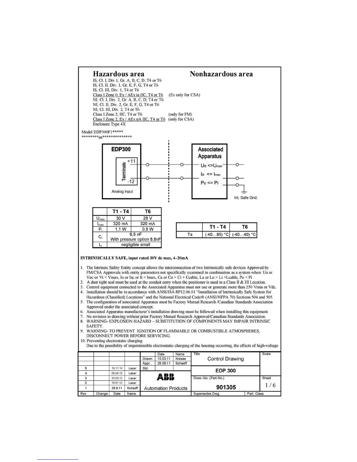 ABB PositionMaster EDP300 - Control Drawing 901305