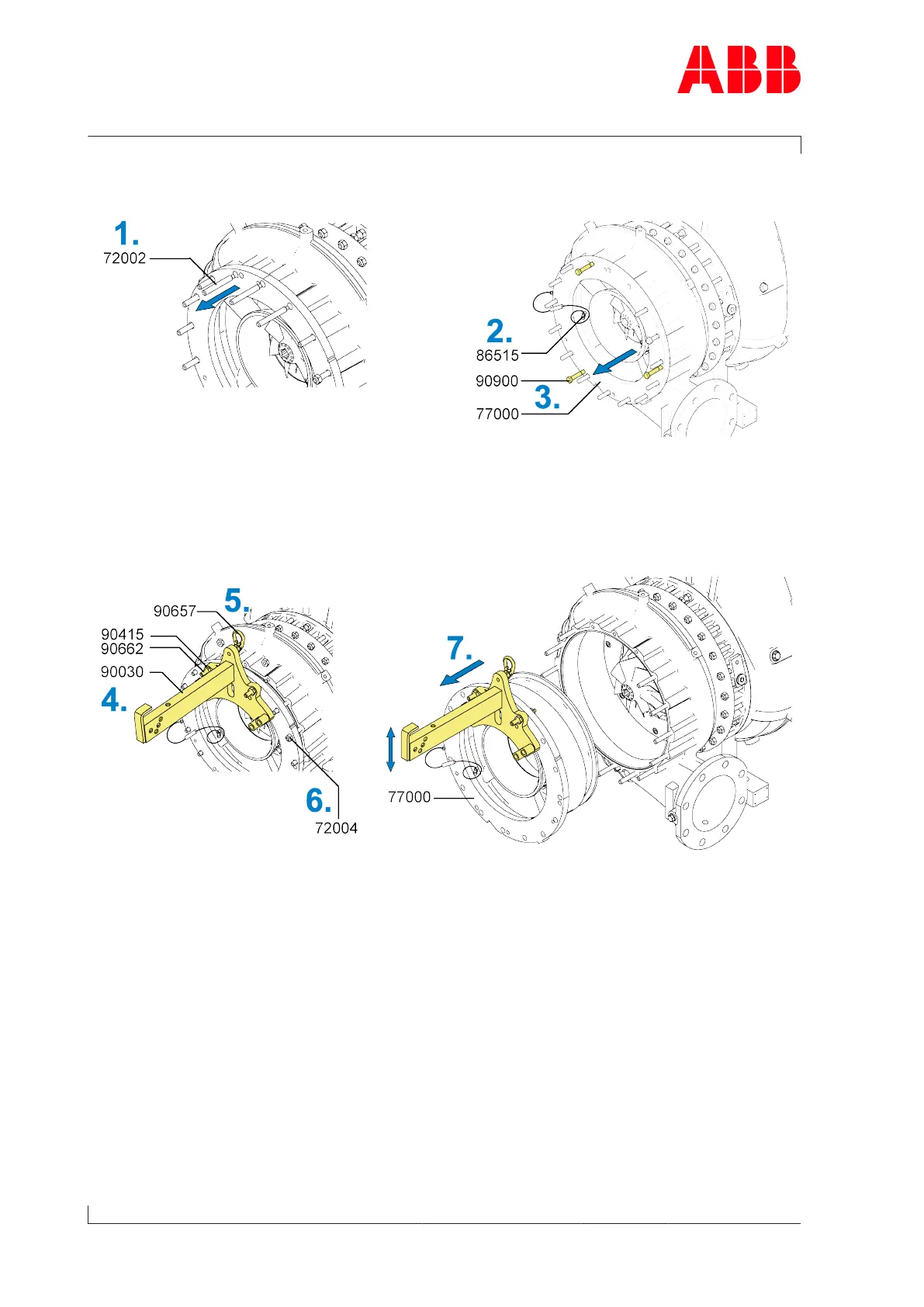 3. Use three press-off screws(90900) to press off the wall insert(77000) until the lifting