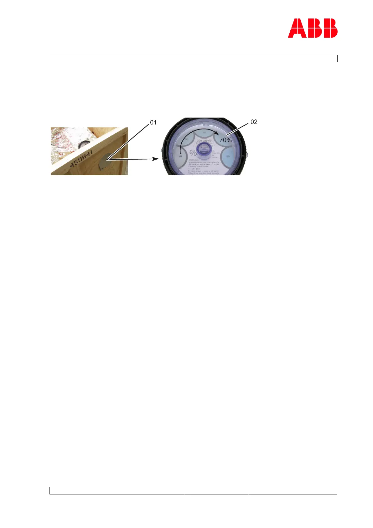 u Check the hygrometer(02) in the sight-glass. There is an opening(01) in the wooden