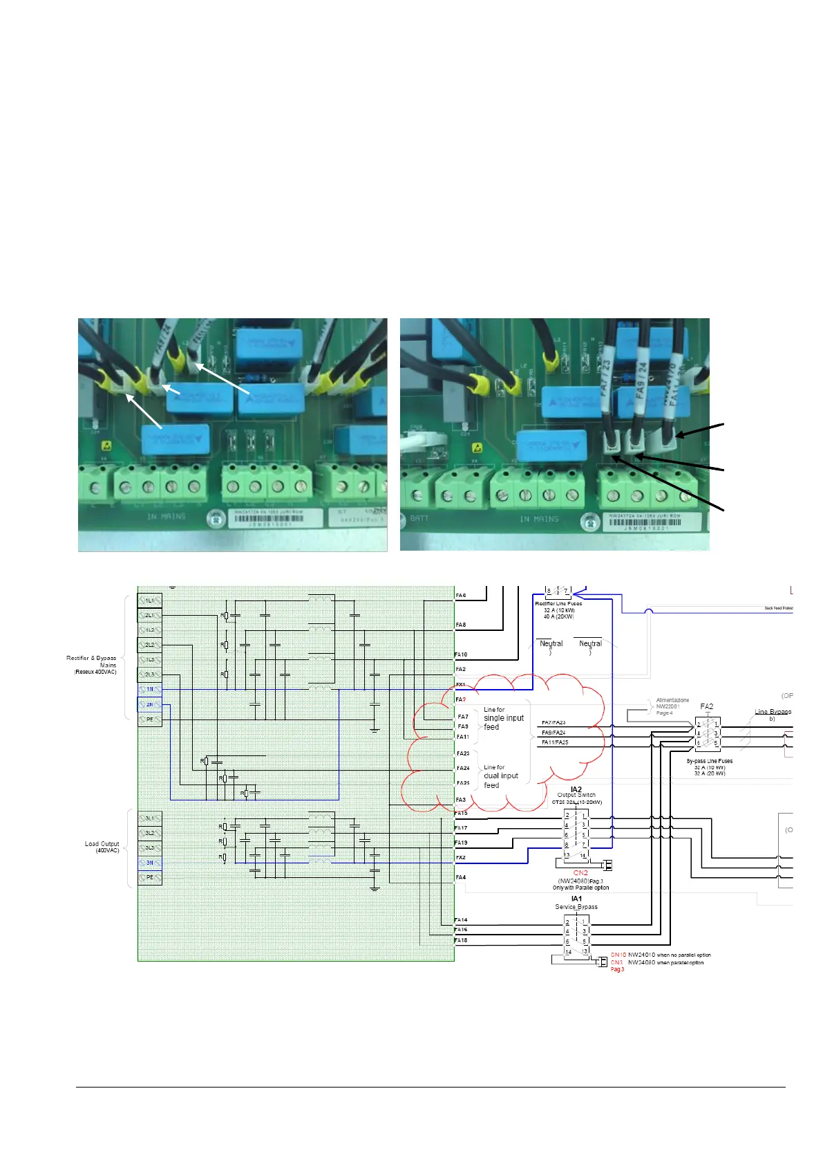 On the distribution PCB, NW24170 (for 10kVA unit) or NW24172 (for 15-20kVA unit) unplug and reconnect the