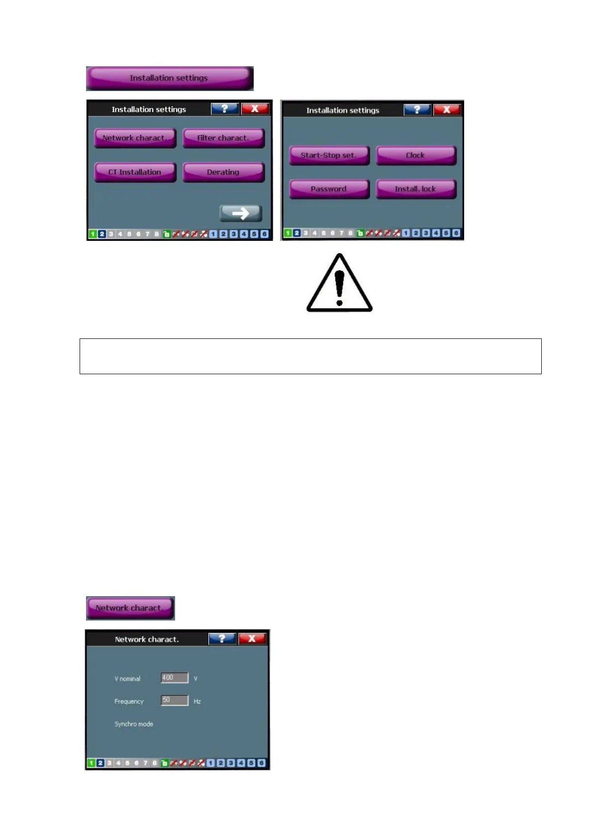 WARNING: The installation settings menu is intended to be used by qualified