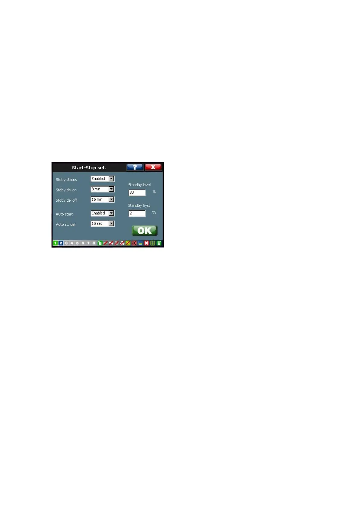 In order to set-up the standby function, five parameters have to be defined: