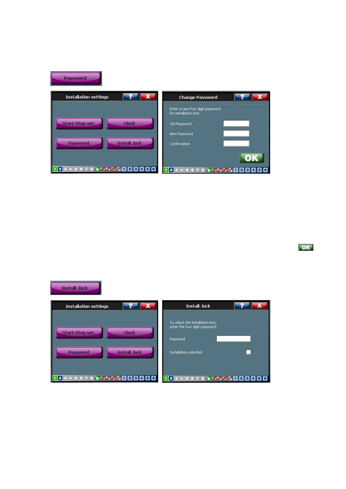 password entered, the installation gets a software lock and changing of key parameters