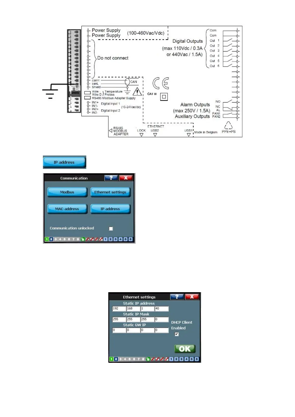 address is 192.168.1.40 which appears in the screen under the menu "IP address". Using