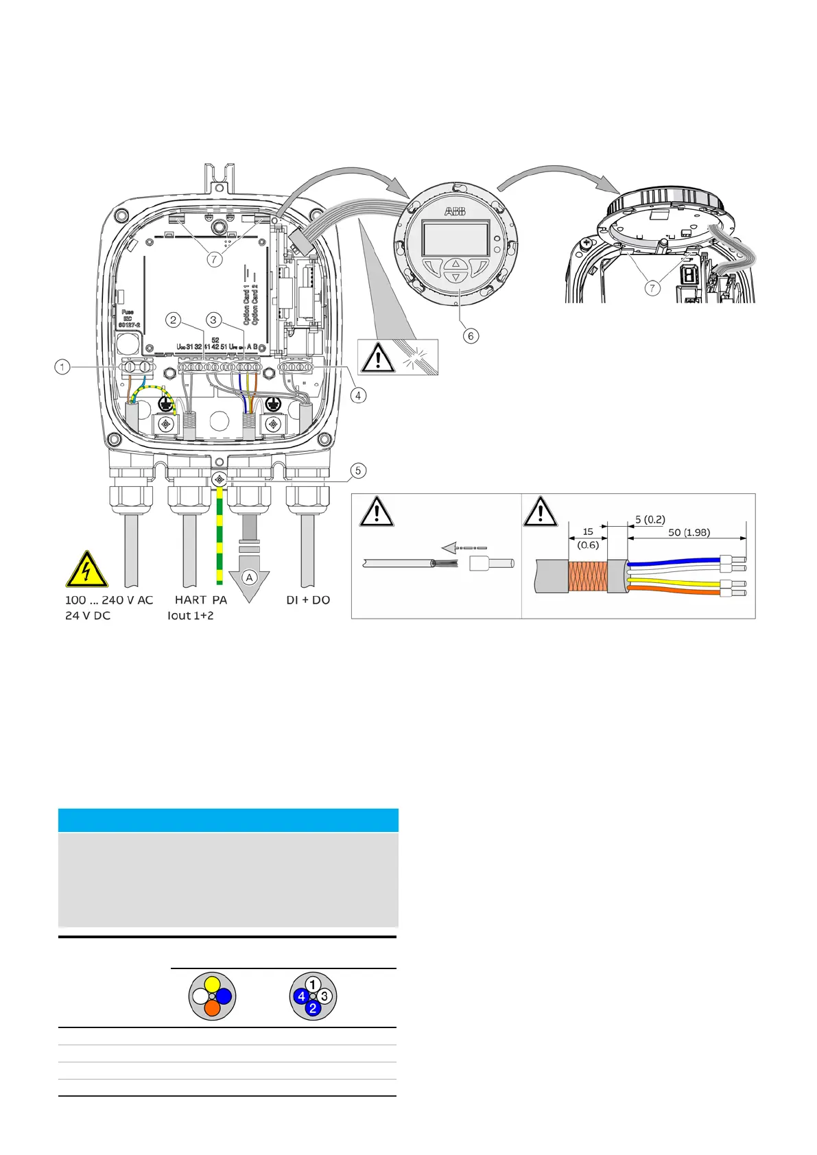 Figure 56 Electrical connection to transmitter in remote mount design [example, dimensions in mm (in)]