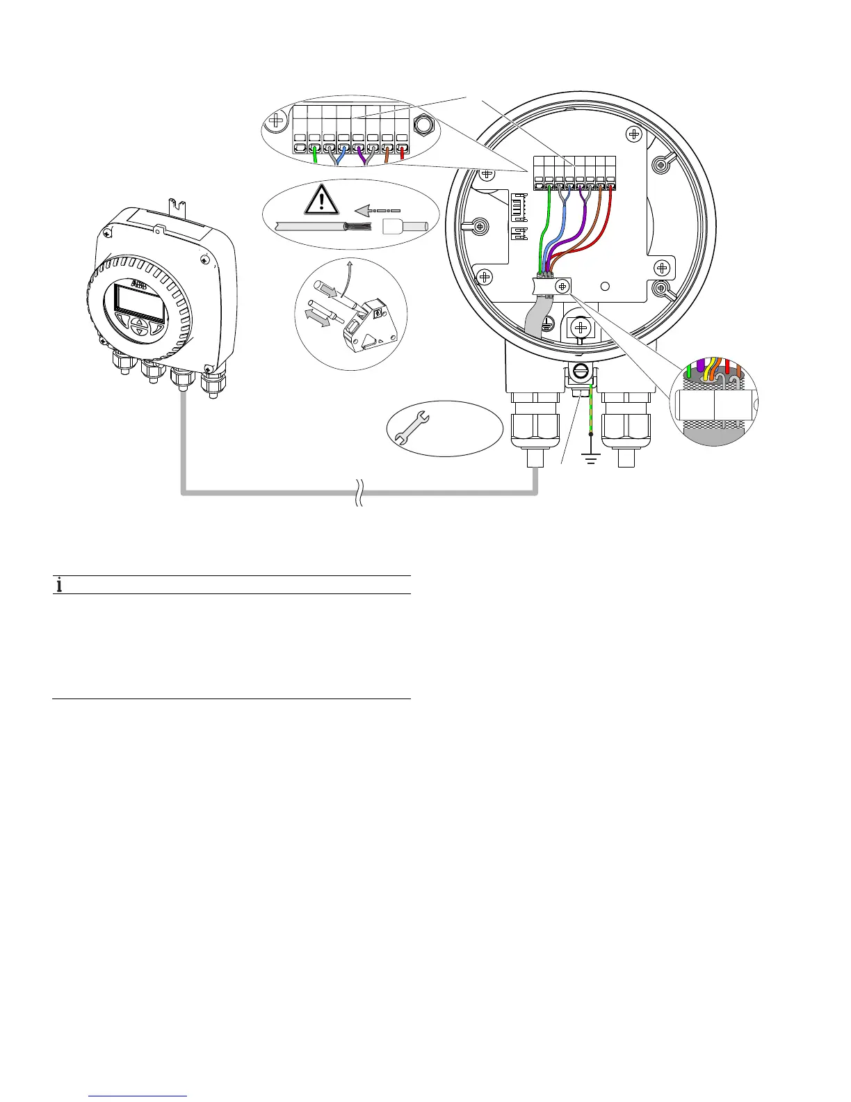 1 Terminals for signal cable 2 Terminal for potential equalization