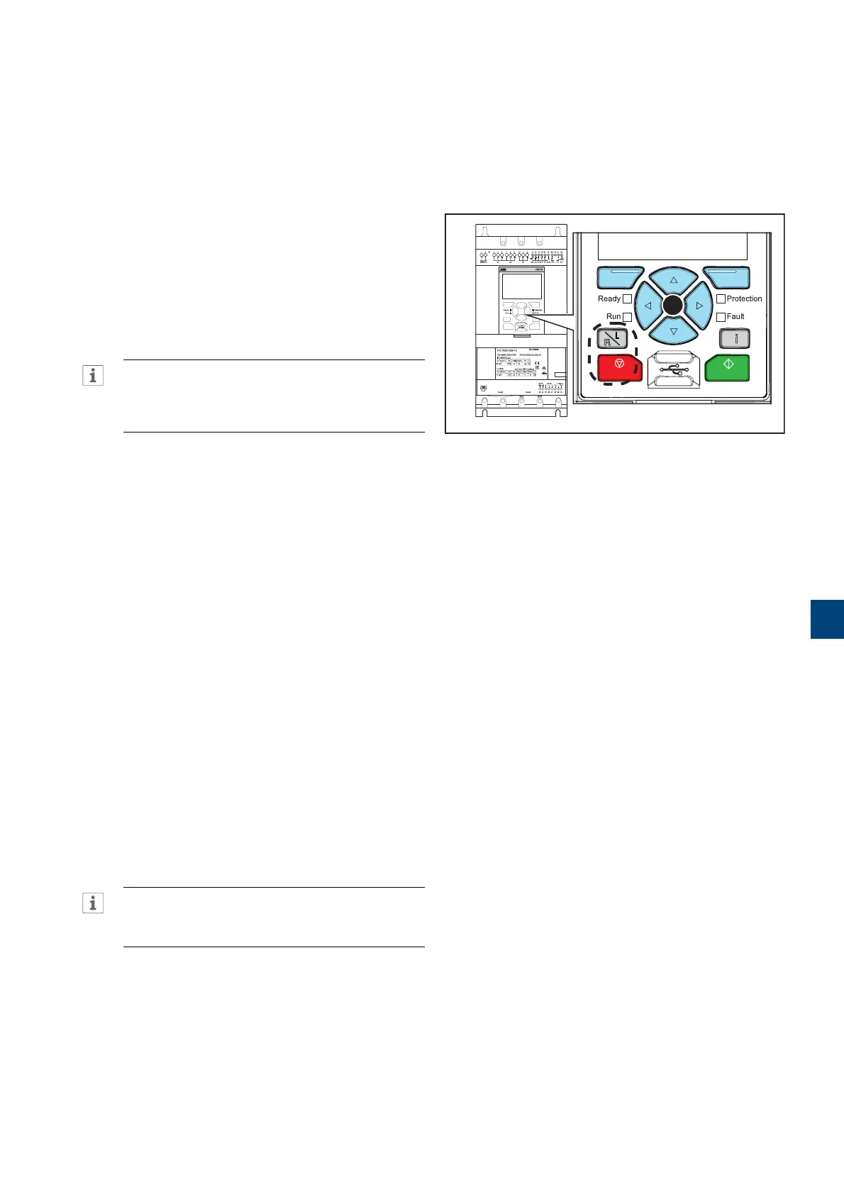 Run, Protection and Fault) will light up. Release the