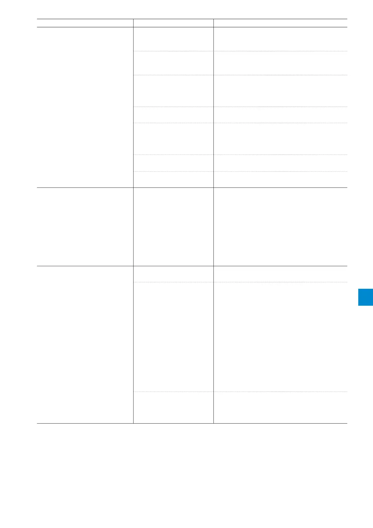 Status Possible cause Solution