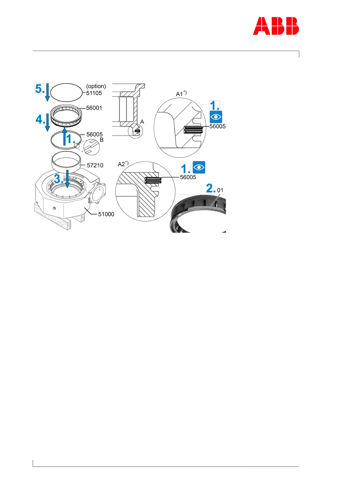 1. Fit the lamellar sealing ring(56005) in the correct slot (see detail A1/A2). When doing