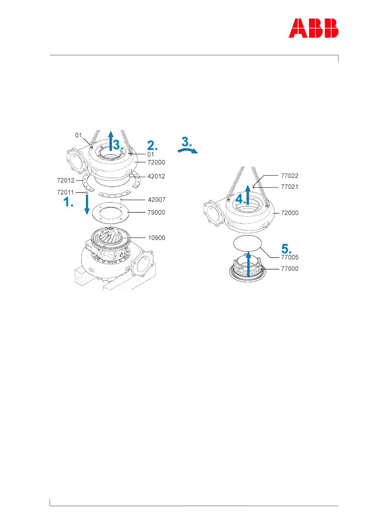 2. Screw two swivel lifting eyes (01) into compressor casing (72000) and secure lifting gear.