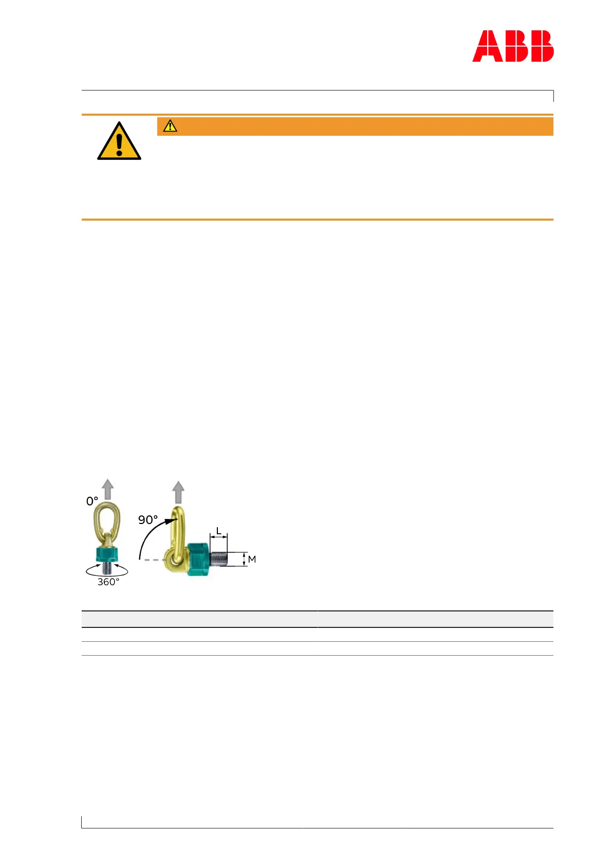 ABB PT003915 - Fig. 27: Swivel Lifting Eye (Example); Table 40: Swivel Lifting Eyes