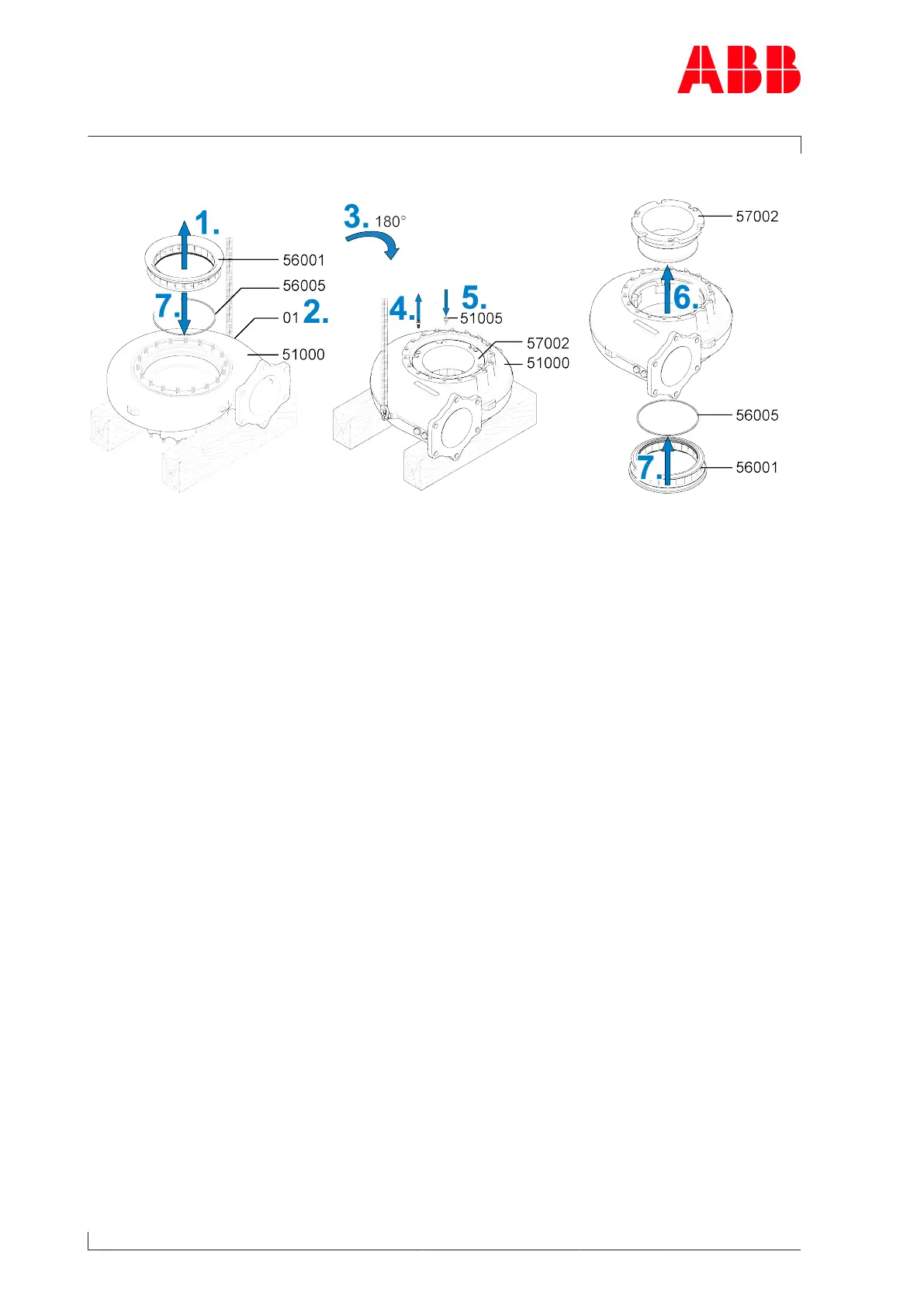5. With screws (51005), press off the gas outlet flange (57002) from the turbine casing