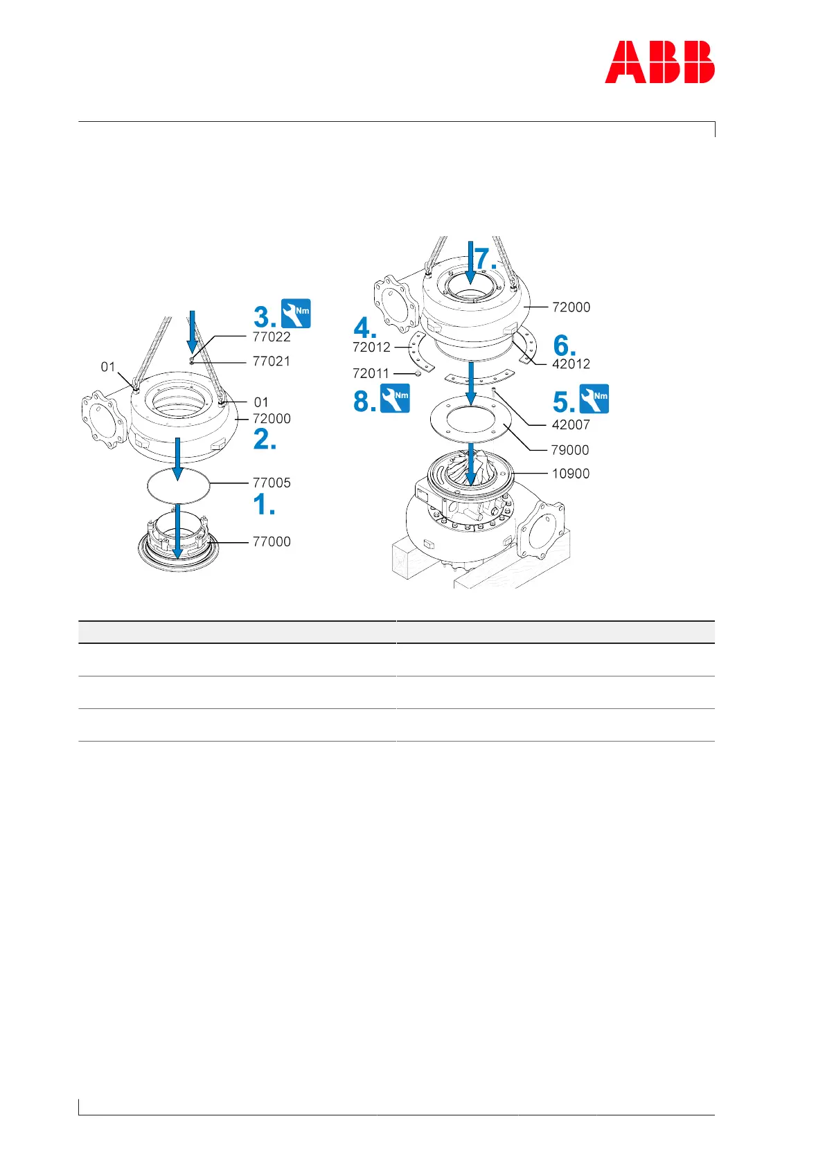 3. Lower compressor casing(72000) onto wall insert(77000) and fit with washer(77021)