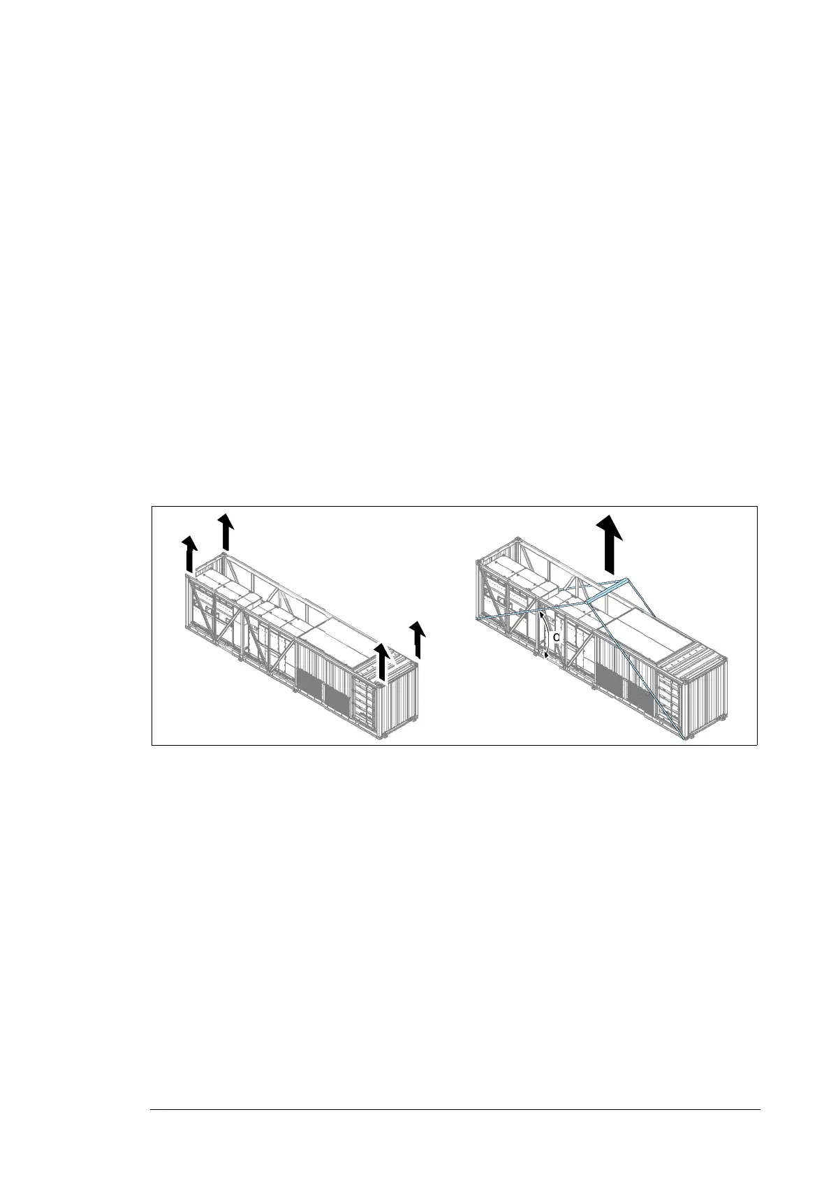 • Lift the megawatt station from the four lifting eyes in the upper corners or bottom