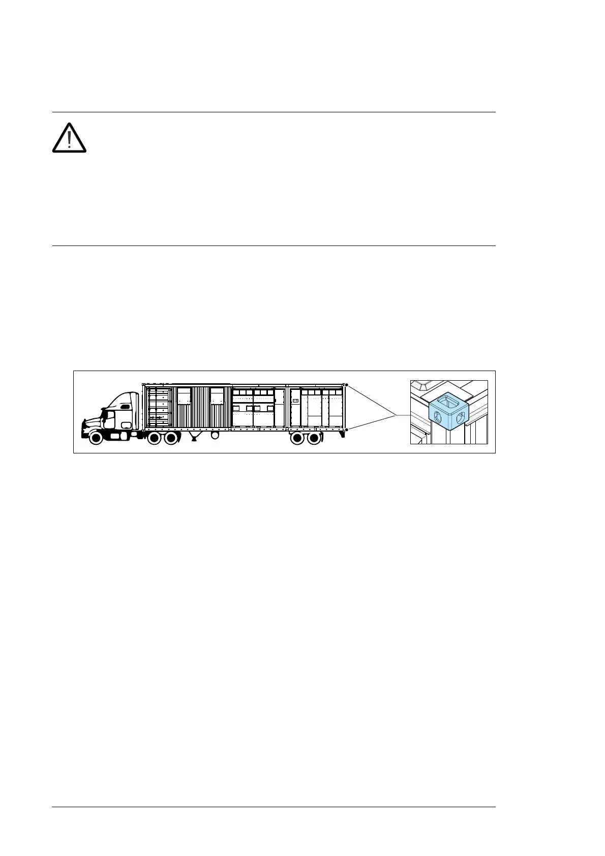 Transport the megawatt station on an open heavy-duty chassis. Do not use an